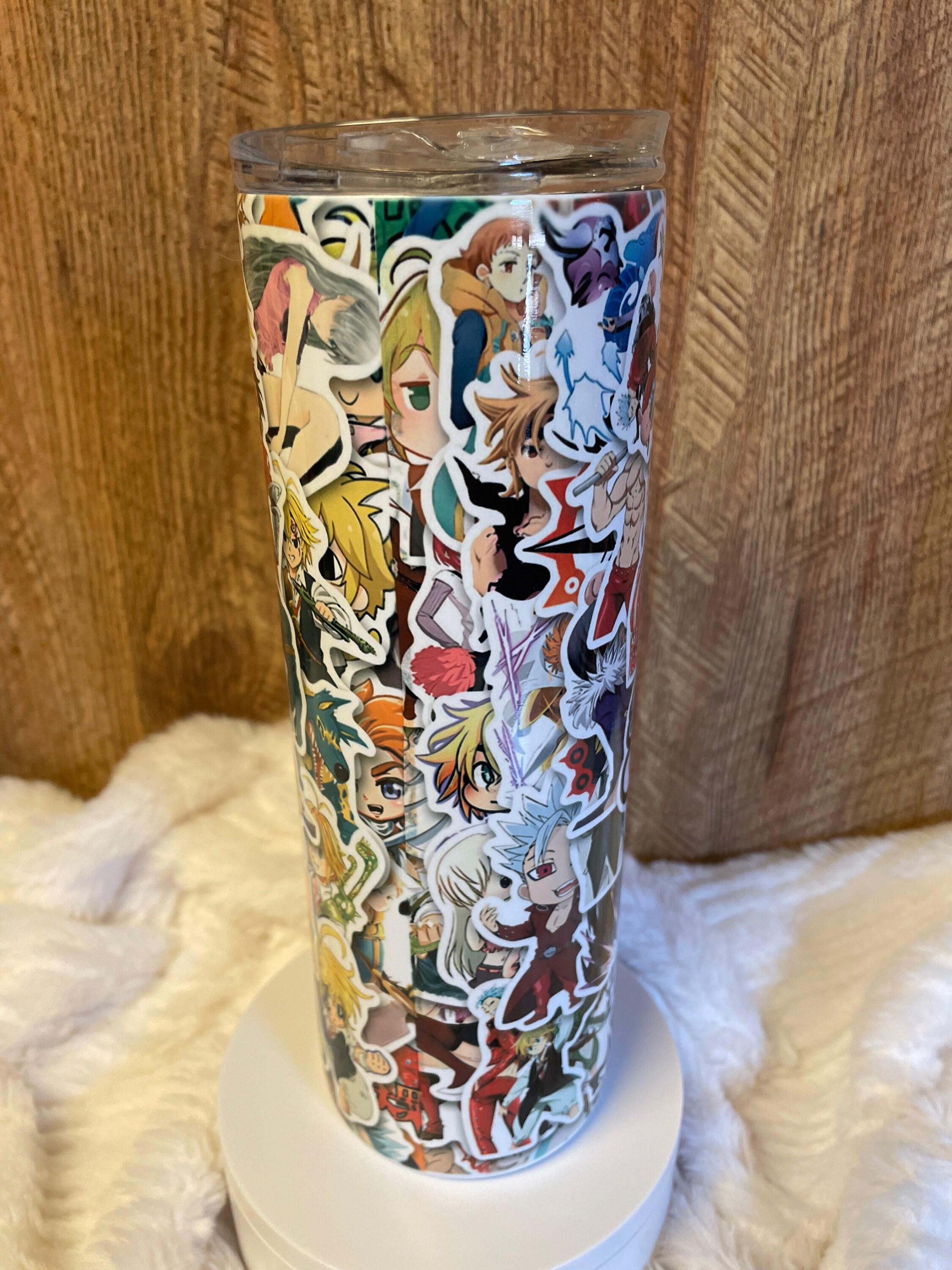 The Seven Deadly Sins tumbler. 20 oz stainless steel double wall insulated. Available in two variations: Sparkly Glitter, Glossy Smooth.