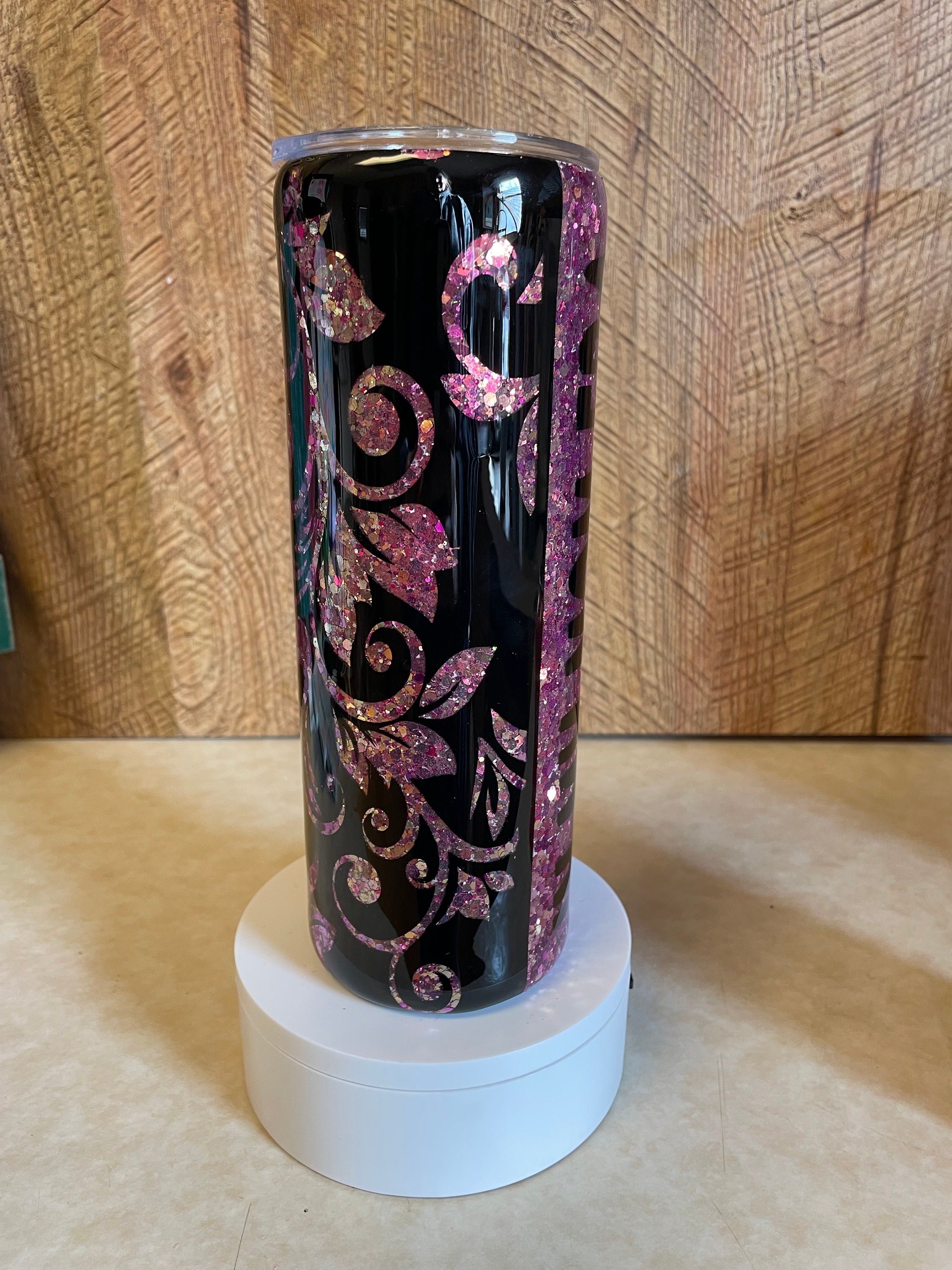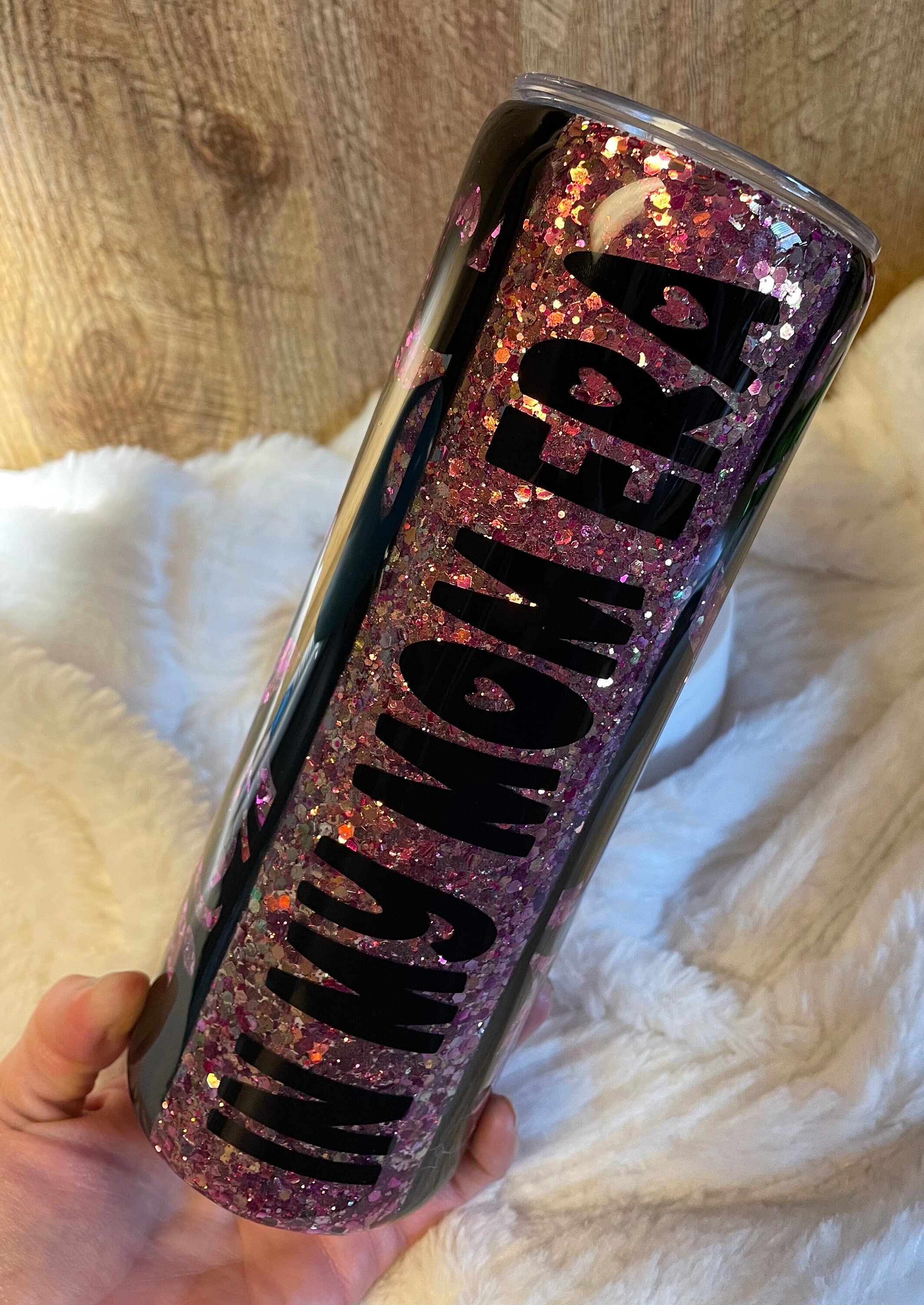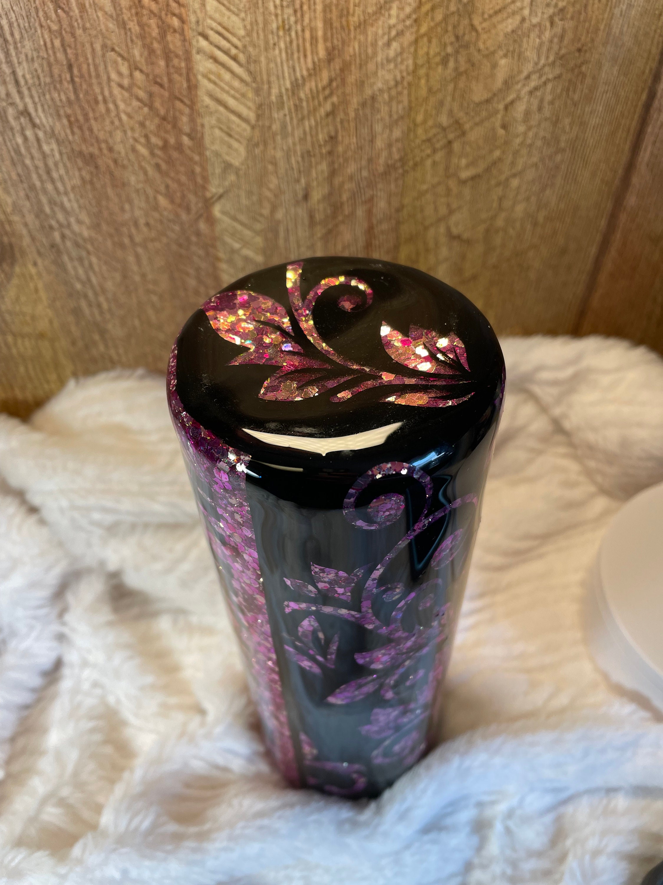 Epoxy glitter peek-a-boo tumbler. All hand painted and glittered, gorgeous color flip premium glitter with rose gold and dark pink burgundy color. Free shipping!