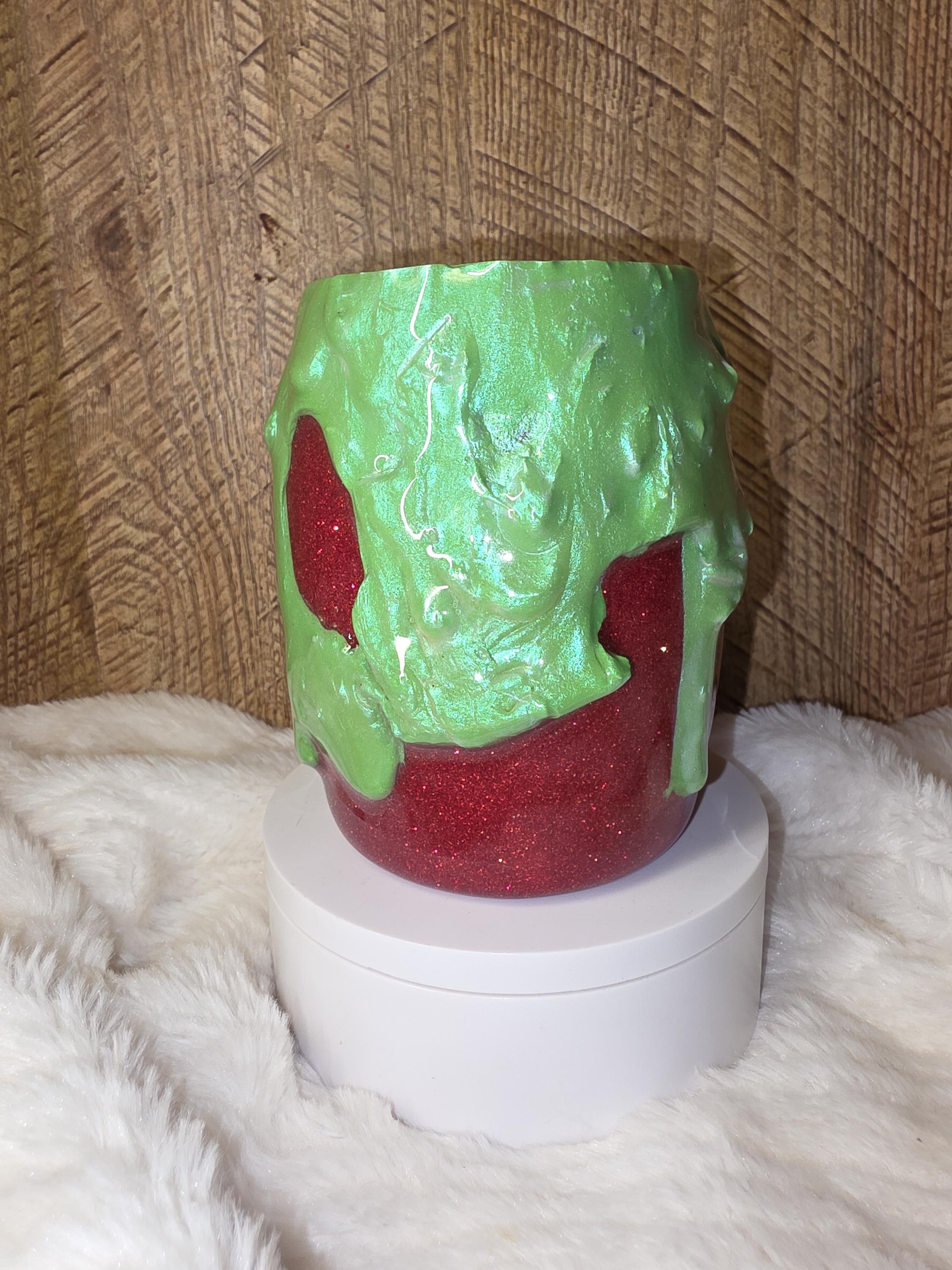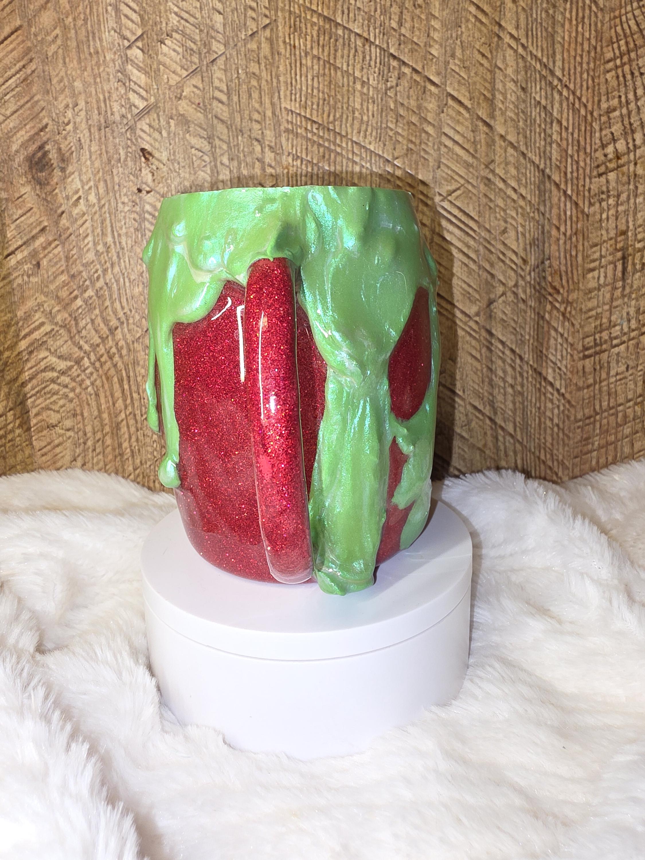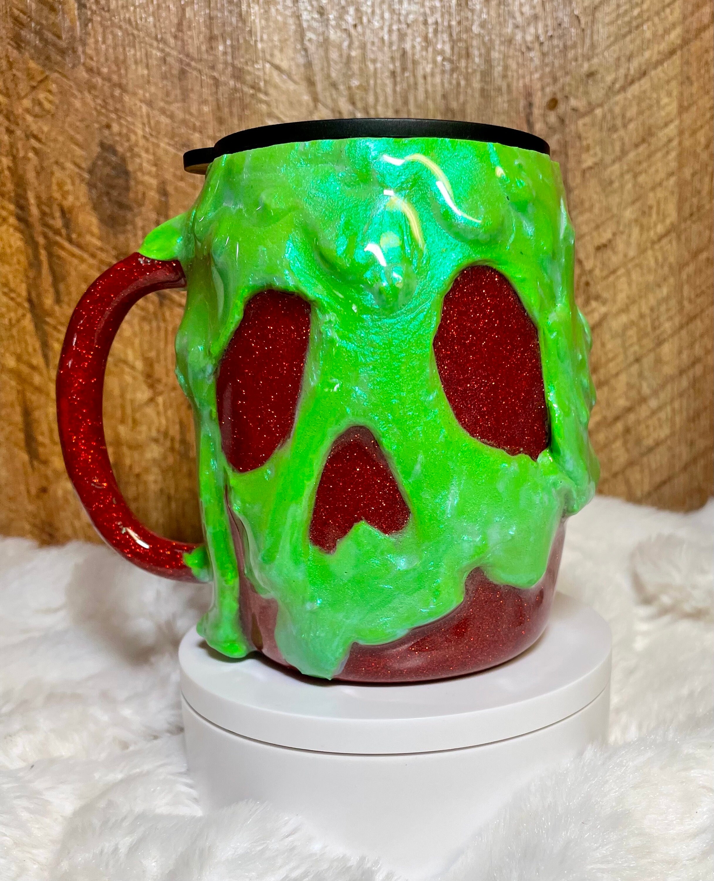 Tumbler pictured is ready to ship! Epoxy 3D Poison Apple tumbler. All made by hand crafting with polymer clay, acylic paints with iridescent glaze, holographic candy apple red glitter, and epoxy. Very unique with amazing detail! Suprise “Just one bite” saying on bottom.