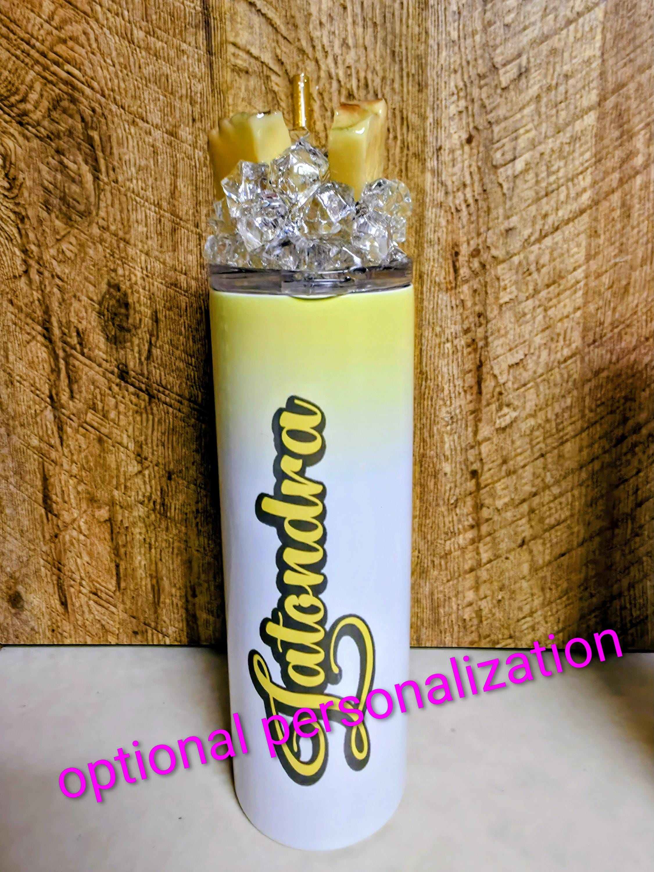 Malibu pineapple (or beverage of choice) 20 oz tumbler with 3D epoxy lid. Stainless steel double wall insulated to keep drinks hot or cold.