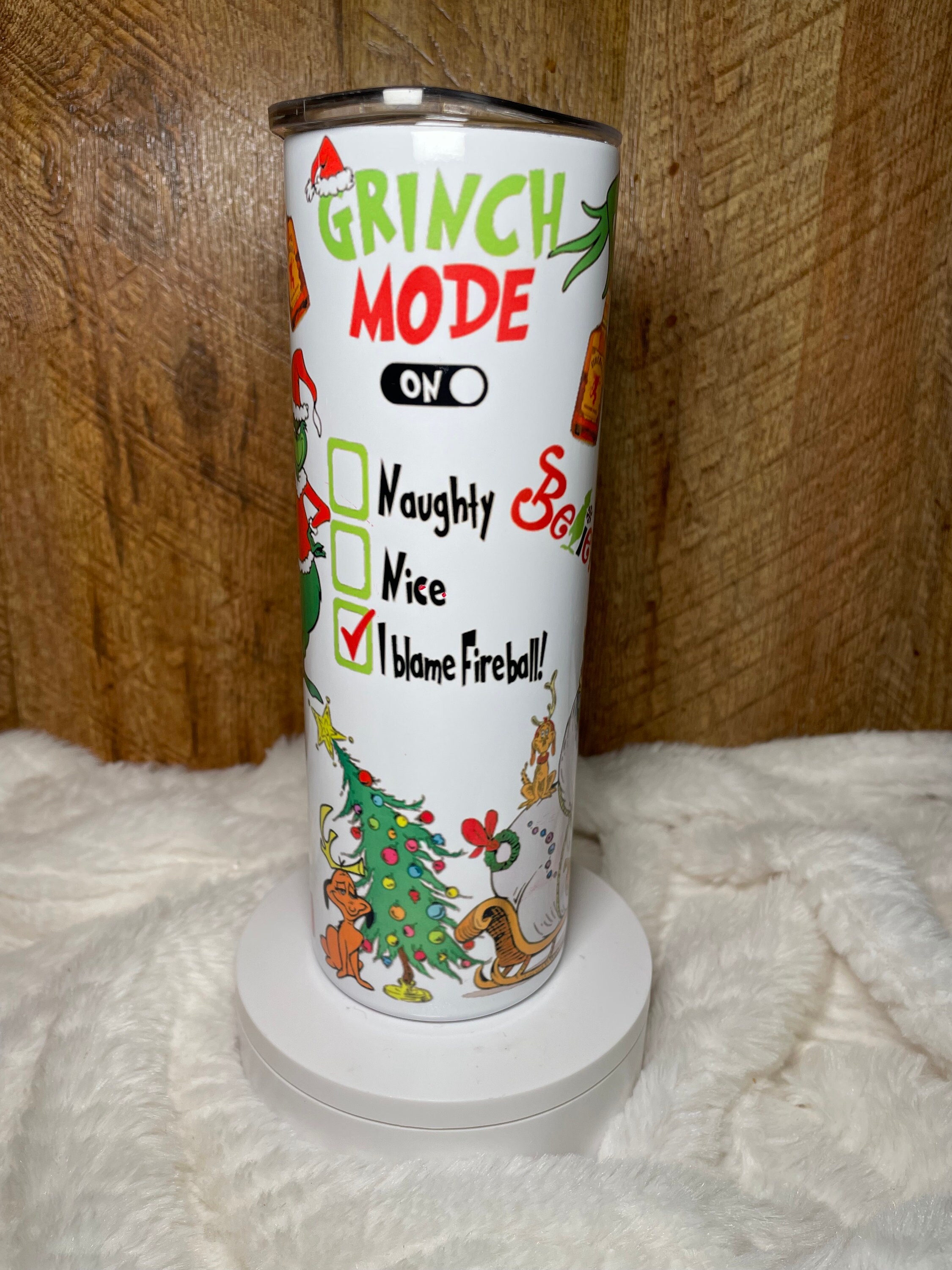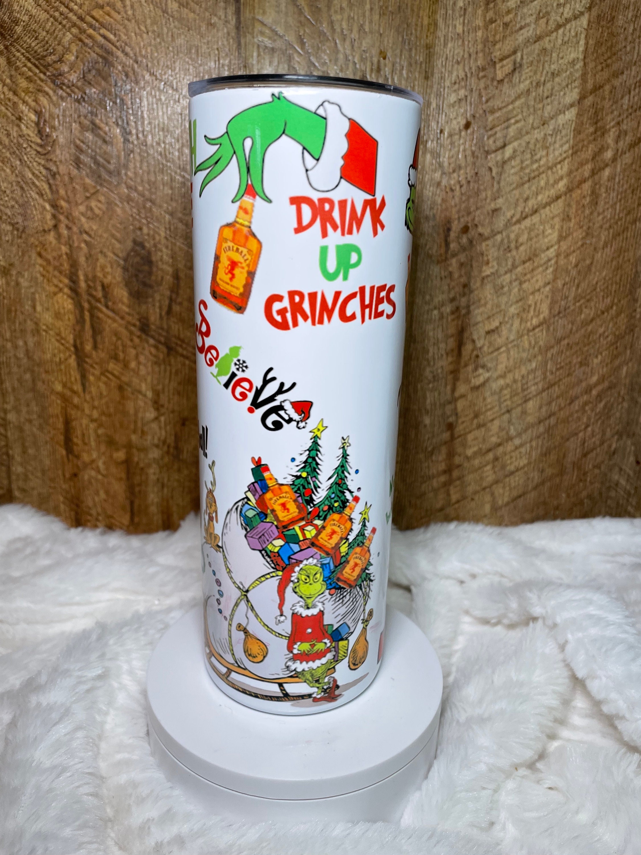 pictured is Fireball, if you would like a different beverage it’s not a problem, send me a message with your order. Green Meanie Christmas Drink Drank Drunk tumbler. stainless steel double wall with sliding lid and straw to keep beverages hot or cold for hours. Can be personalized free, free shipping! would make awesome white elephant gift!