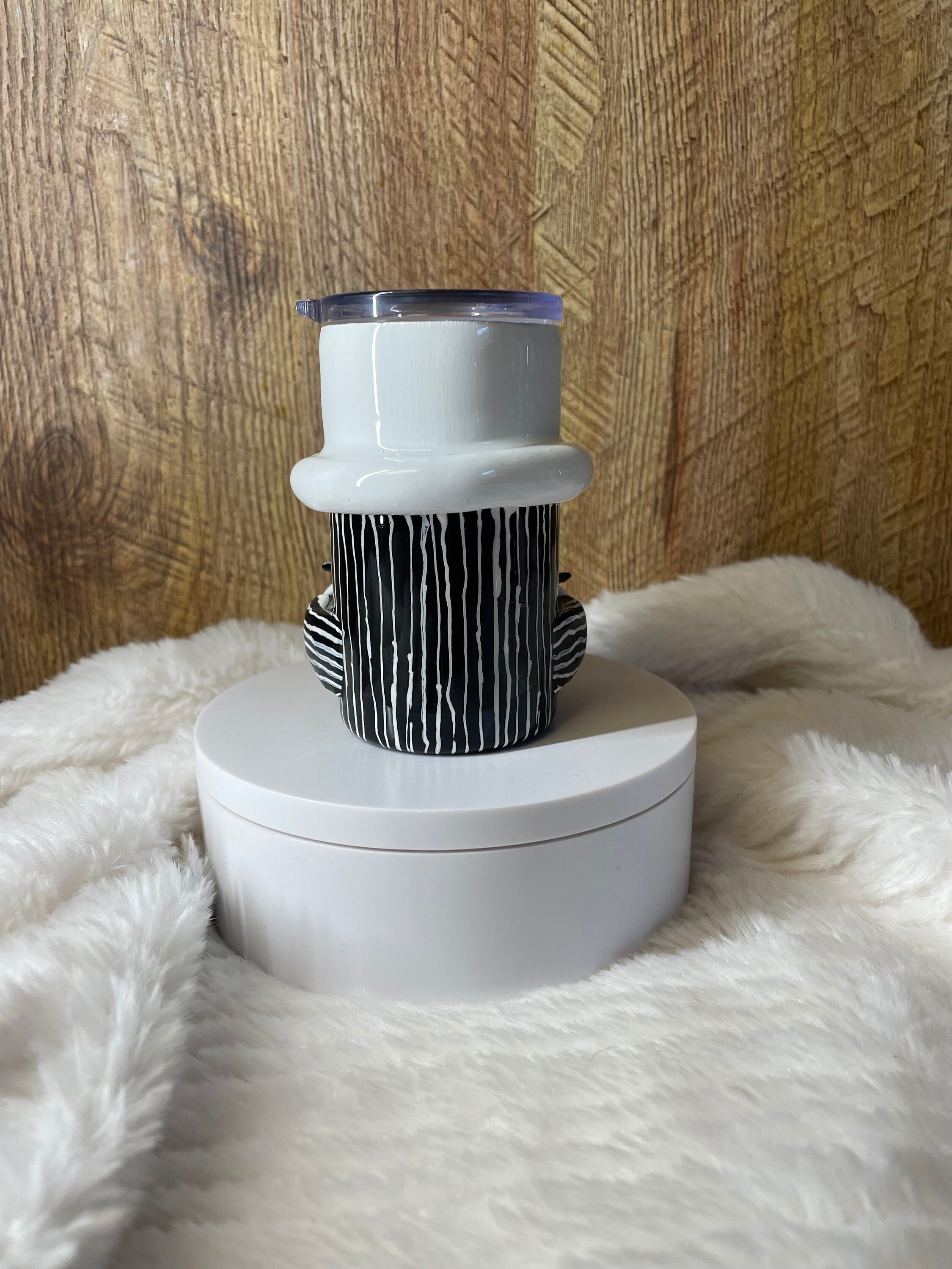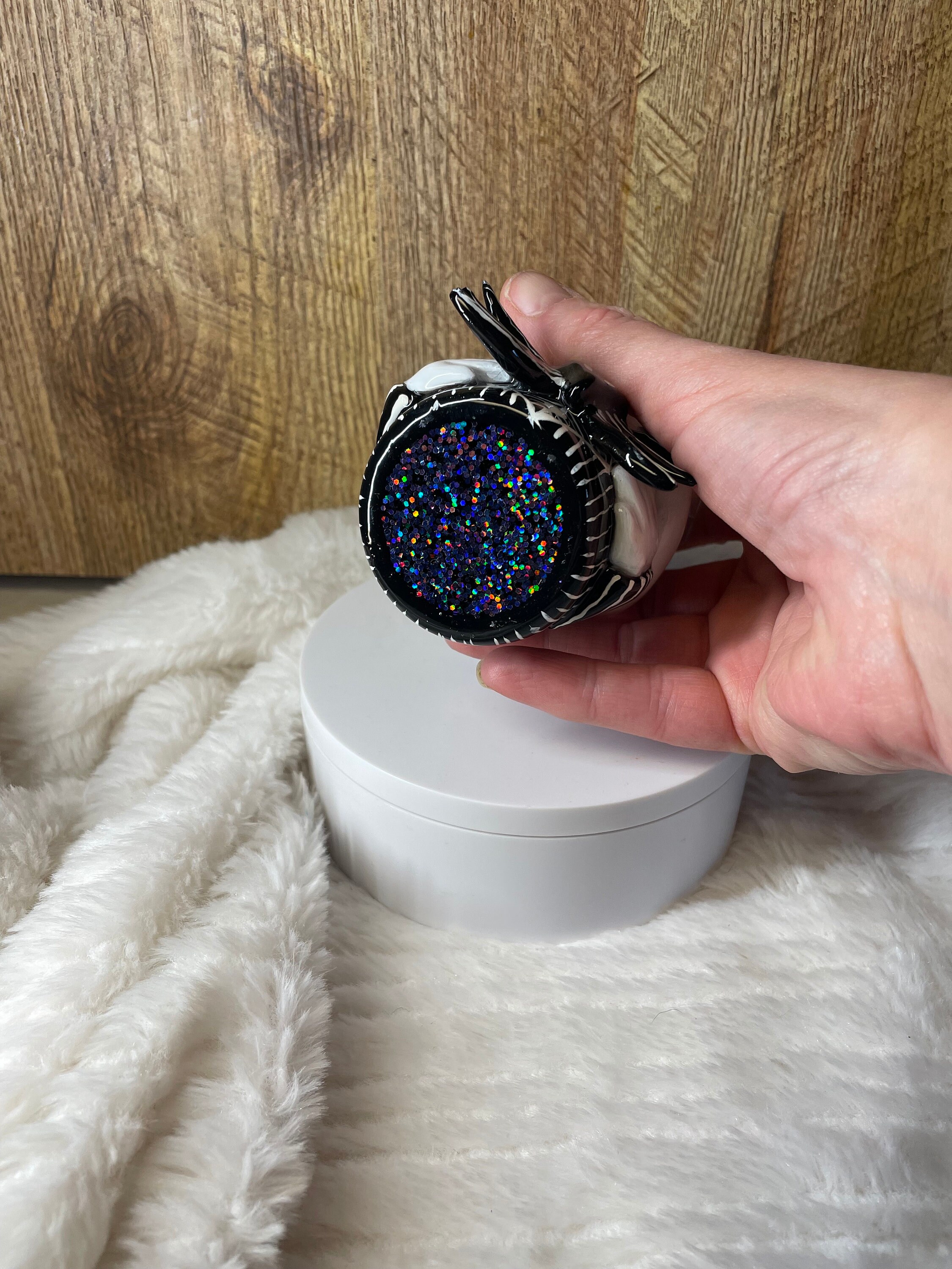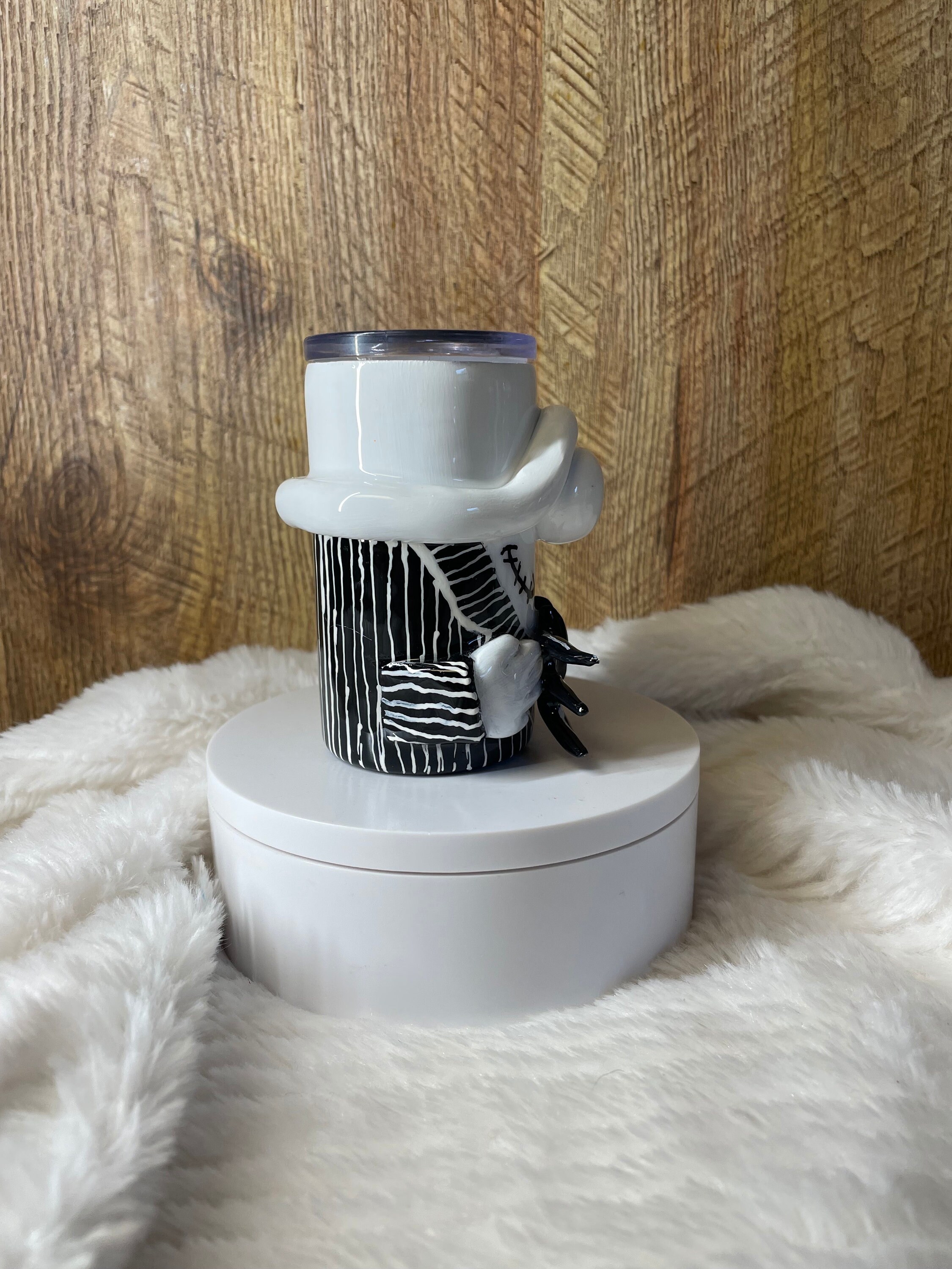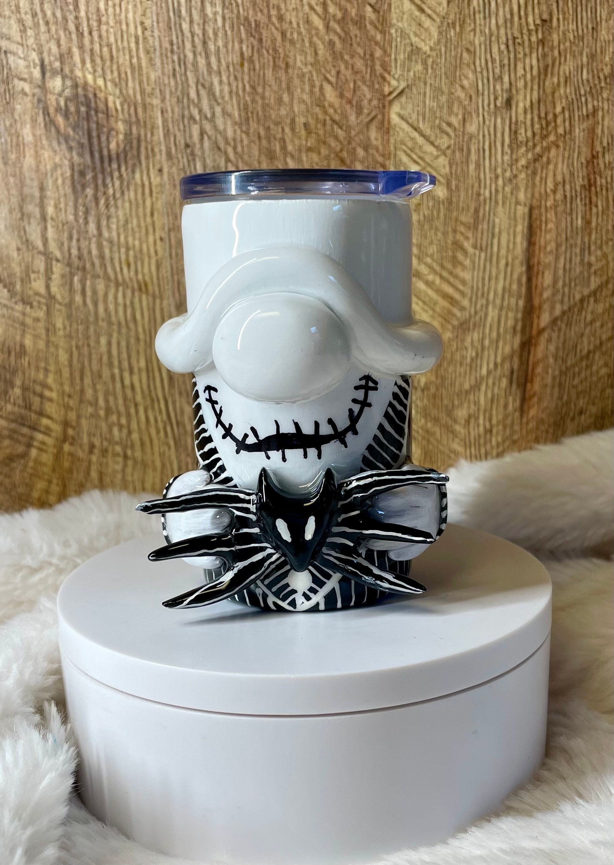 Epoxy 3D Jack gnome mini 3oz espresso/shot tumbler. All made by hand crafting with polymer clay, acrylic paints and glaze, and epoxy. Very unique with amazing detail!