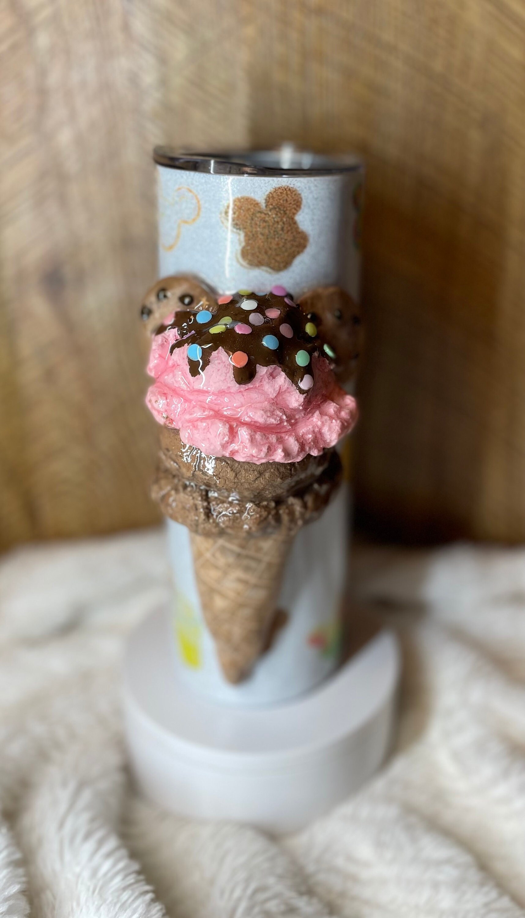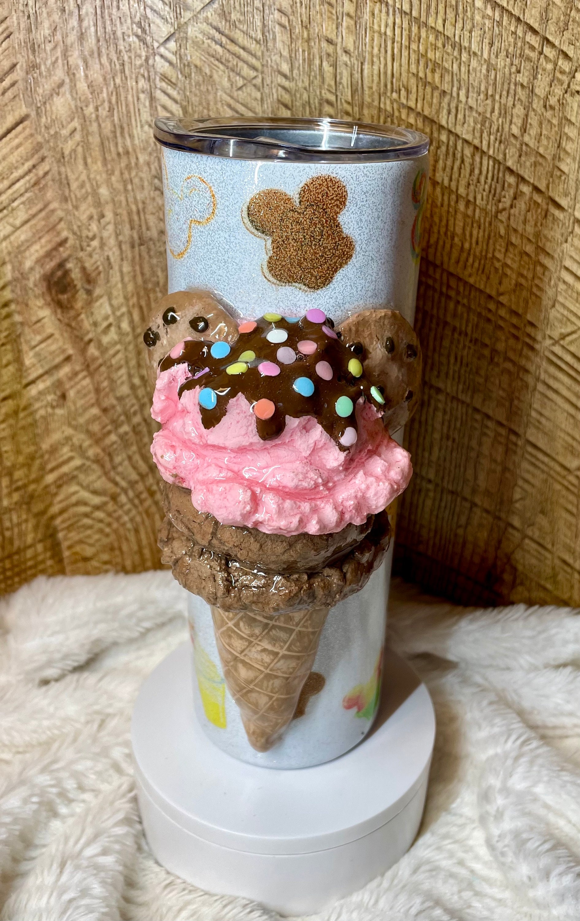 1 of a kind, tumbler pictured is ready to ship, no wait time. Epoxy 3D tumbler looks likea real ice cream, tumbler has favorite snacks so fun! 20oz tumbler. All made by hand crafting with polymer clay, acrylic paints and glaze, and food grade epoxy. Very fun with amazing detail!
