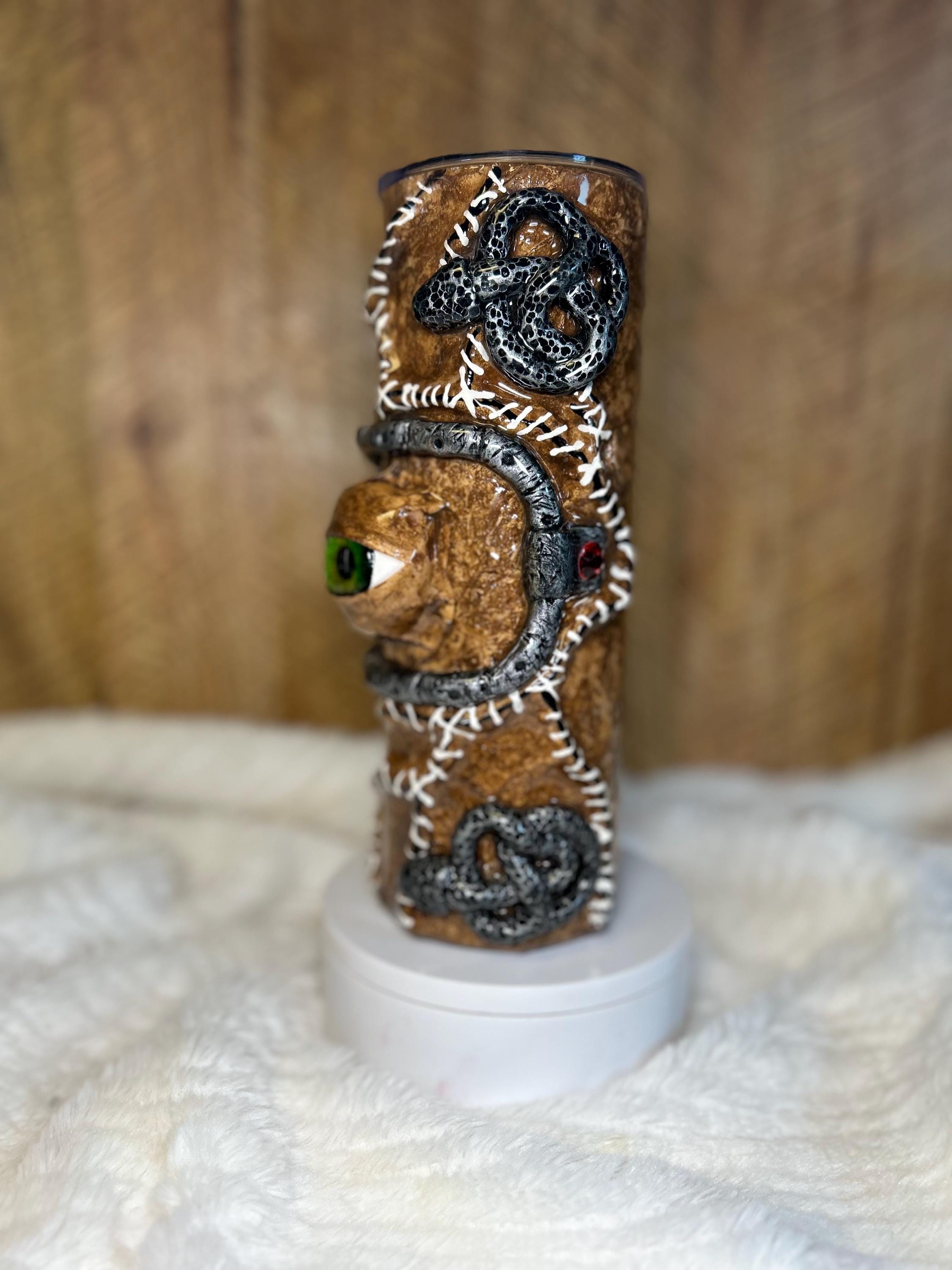 Epoxy 3D premium handcrafted polymer clay functional art epoxy coated tumbler. All made by hand crafting with polymer clay, acrylic paints and glaze, and epoxy. Very unique with amazing detail! There is a space to add make or saying.