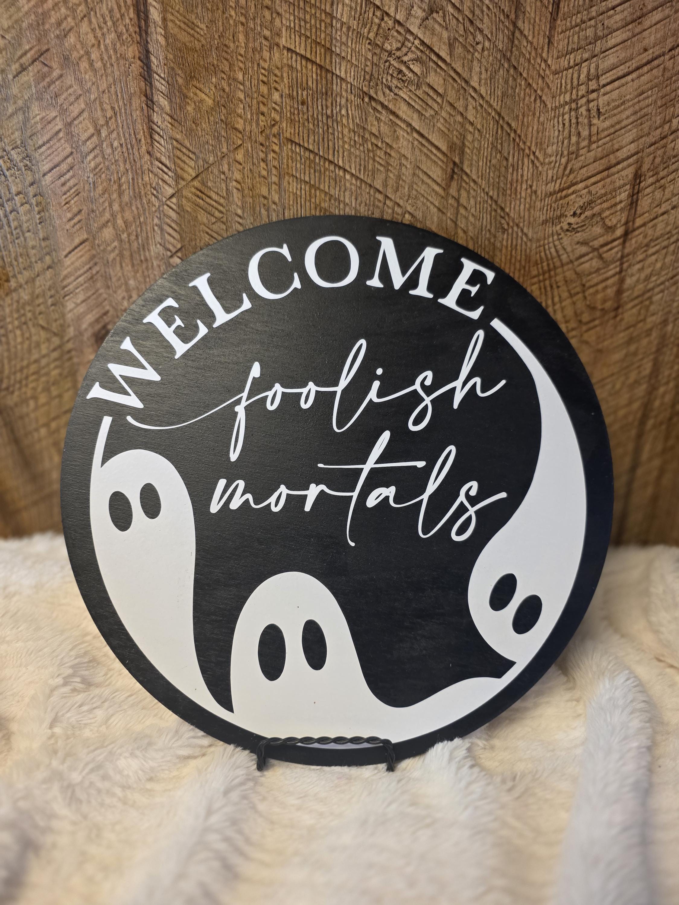 Gorgeous hand-made wood door or wall sign. Each sign is made by hand every time ensuring you have a beautiful, whimsical piece of functional art for your home. Available in 12 and 16 inch round sizes. Hardwear is installed and small strands included if you prefer standing sign. Would look perfect on counter or desk. Message me with any questions or custom requests, thanks for taking the time to visit my shop!