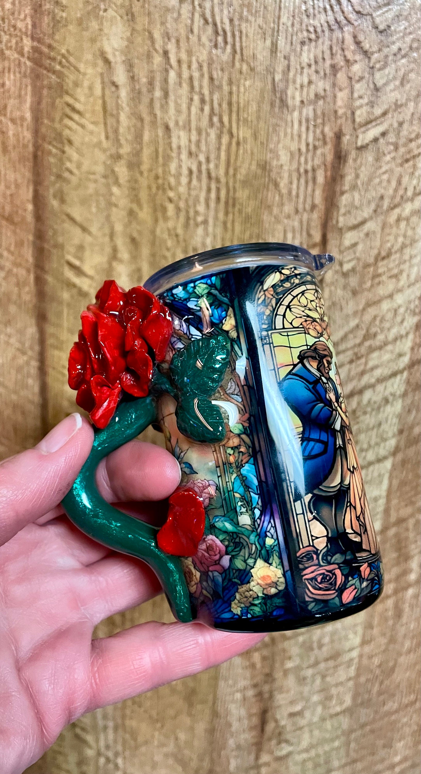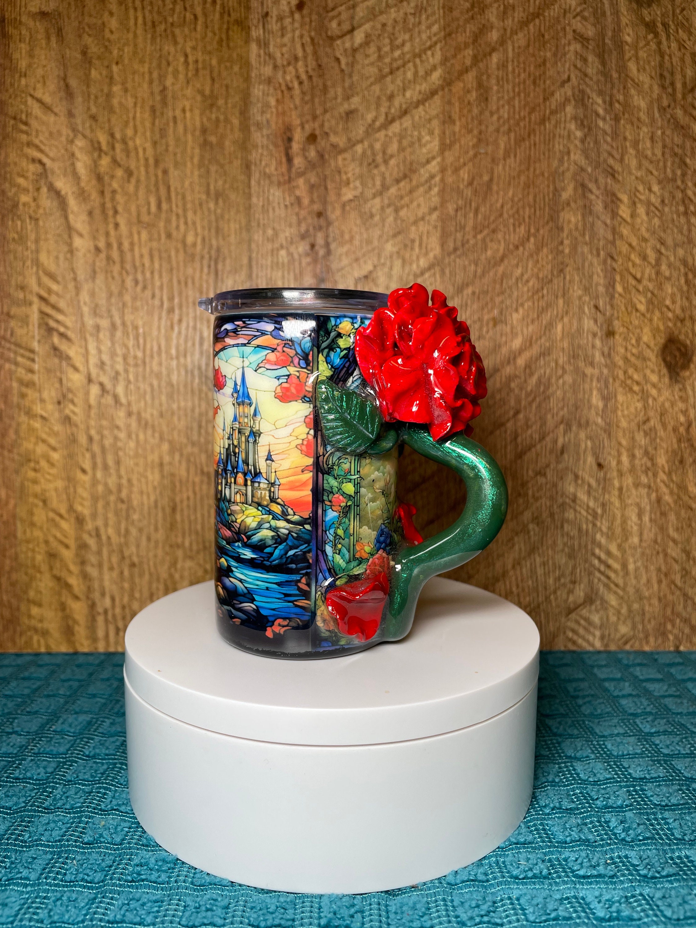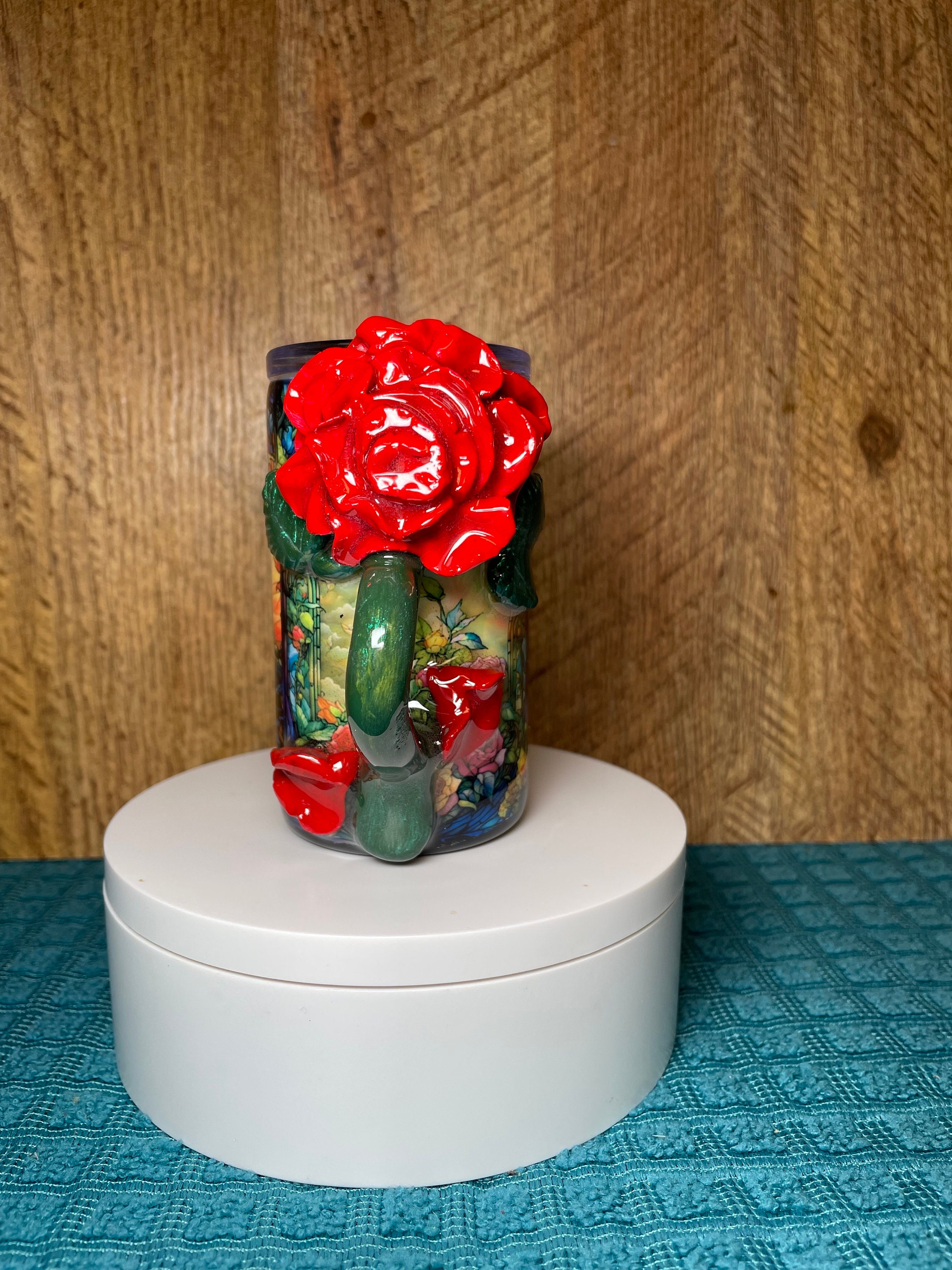 Epoxy 3D lux handle tumbler. All made by hand crafting with polymer clay, acrylic paints and glaze, and epoxy. Very unique with amazing detail!